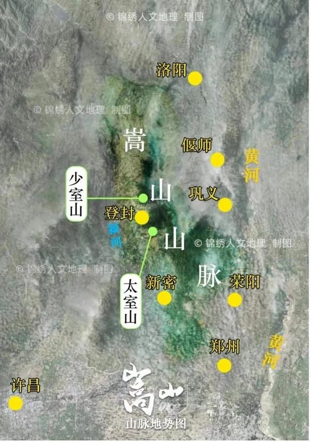 嵩山山脉地势图,该图方位为上西下东,图中"荣阳"应为荥阳。