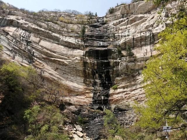 崖壁陡峭,渐次而下,溪水潺潺,聚水成潭。尔后,山间烟雾缭绕,隐隐可见远处山峦如海市蜃楼。