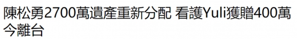 陈松勇一生未婚。去世前,他把照顾了他8年的印尼的护士尤利当成了自己的女儿,并给尤利留下了一些遗产。但在财产分配之初,因为弟弟对遗产分配不满,发生了争吵。陈松勇二哥在陈松勇厅直接拍桌子,指责三哥故意隐瞒哥哥病情,善后事宜和医嘱都不和他商量,也引起了各界关注。