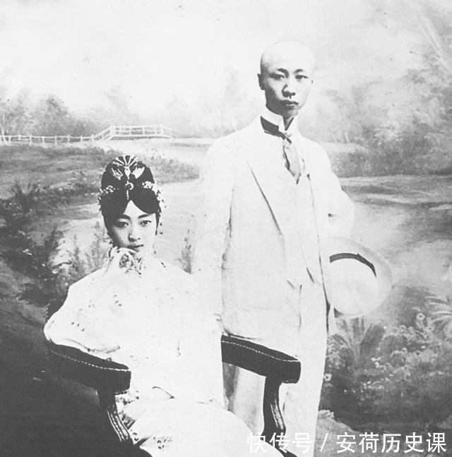 拍摄于紫禁城里,此时虽然溥仪在心里还是以为皇后是皇帝的附属品,任何事情都得听他的,但是在一些礼仪细节上也已经出现了不同于清朝咸丰及其以前的情况,比如这个照片,皇后坐着,溥仪站着,这在康雍乾时期绝对不会这样。