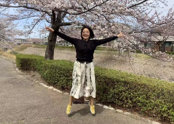 老戏骨顾艳在个人社交平台晒出了一组自己在樱花树下游玩的照片。画面中的顾艳穿着黑色的上衣和白色的长裙,在樱花树下蹦了起来,整个人跳起来呈一个大字,表情看起来很是兴奋。带的包被随手放在地上,一点也不怕脏。