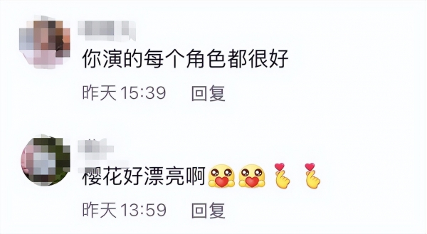 粉丝们看见顾艳发出的这一组照片,纷纷在评论区留言。有的说顾艳演的每一个角色他都很喜欢,还有的在夸赞樱花树好漂亮,确实如此,人美景也美。