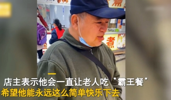 店主表示他会一直让老人吃"霸王餐",希望他可以永远这么简单快乐下去!网友纷纷为店主点赞,表示:你只管善良,剩下的交给天意!