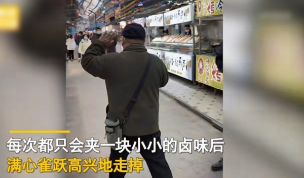 施者有爱,取者有度,多么美好的画面,为善良的店主点赞,虽然大爷拿走的卤味并不算贵,但店主的爱心无价。