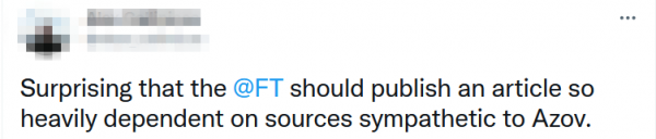 通篇报道为乌克兰亚速营辩护,将其塑造成"在俄方政治宣传下被误解的卫国英雄",更是只字不提亚速营士兵虐待俘虏、枪杀平民等恶行,《金融时报》如此堂而皇之地为臭名昭著的乌克兰纳粹武装势力洗地,令评论区的不少西方网民都震惊不已。