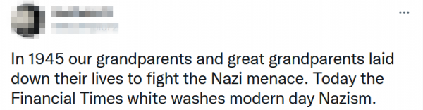 "太无耻了。历史不会宽恕这种为法西斯辩护的宣传。"