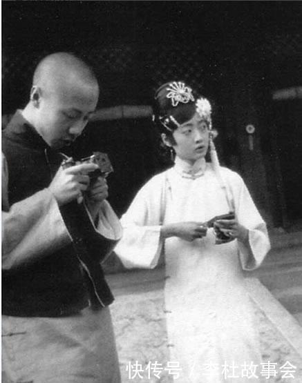 晚清老照片:光头的溥仪和婉容正在把玩相机。