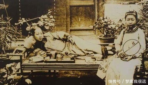 两名官员躺在凳子上吸烟,怀里还搂抱着妻子,眼神迷离又很麻木,鸦片已经侵蚀到社会的各个阶层,身体和精神都被腐蚀了,难怪大清会走向灭亡。