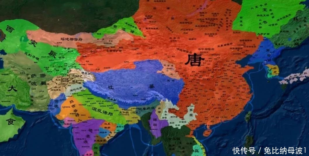 以往讲大唐的时候,大家习惯性地是以中原为本位,也就是当时世界以中原为中心在转,其实不是,在当时的亚洲,对后来影响几千年的几股势力已经全部到位,大家看看地图就知道了: