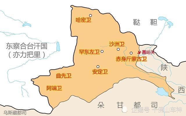 当然,明朝也一直提防着东察合台汗国,明朝曾在甘肃西部和新疆东部设立哈密、安定、阿端、赤斤、曲先、罕东、罕东左,共计七个卫所,史称关西七卫,用以监视和防范东察合台汗国。