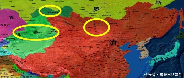 当清朝入主中原定鼎天下后,版图基本上相当于明朝两京十三省加东北和漠南的领土。其实这个时候清朝基本满足了,但是形式迫使清朝为了自保不得不通过征战扩张版图。喀尔喀部和漠西蒙古此时属于臣服,但是清朝并不直辖统治。到康熙时期清朝几乎处处烽火:北部沙俄蚕食清朝东北老家、西南三藩叛乱、西北准噶尔汗国虎视眈眈、东南盘踞台湾的延平王一系袭扰东南沿海。正如《康熙王朝》中康熙在千叟宴上说的,是这些敌人逼得他立下了这开疆拓土的丰功伟业。