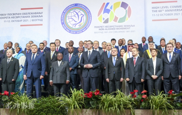 当地时间2021年10月11日,塞尔维亚贝尔格莱德,塞尔维亚总统亚历山大-武契奇等各成员国代表参加了不结盟运动第一次会议60周年的纪念会。图自澎湃影像