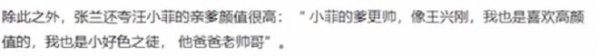 有意思的是,张兰还在直播间自称是好色之徒。还在夸奖汪小菲的亲爹,说他颜值很高非常帅,"小菲的爹更帅,像王兴刚,我也是很喜欢高颜值的,我也是小好色之徒,他爸爸老帅哥"。