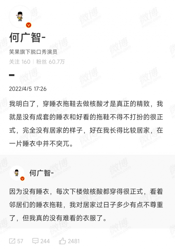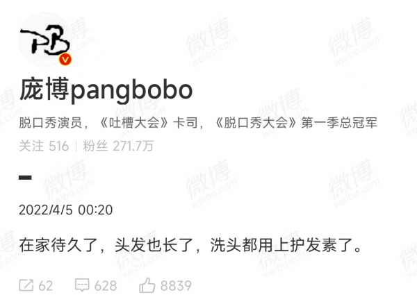 同时不止这些,扒了扒一些在上海隔离的脱口秀演员的微博,也是非常犀利和有趣,值得一品。