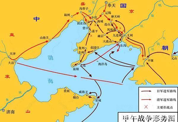 再次,日本两路大军当时已占领辽东半岛和山东半岛的大片土地,对直隶形成了南北两面夹击之势。