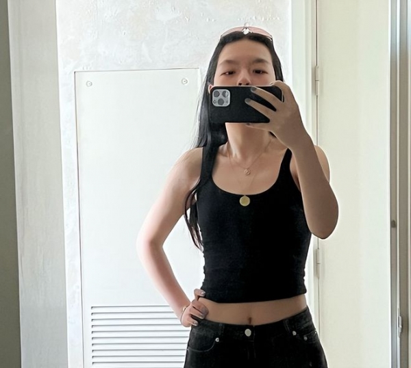 近日,著名主持人李咏女儿在社交平台晒出几张自己的自拍照。从照片中看到,李咏女儿法图麦穿着一件黑色的吊带短上衣,露出纤细的胳膊和腰部。锁骨也十分的精致,脖子上的金色项链更显贵气。