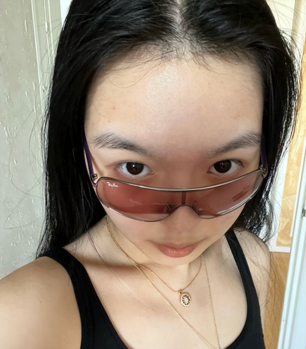另一张的姿势更是独特,素颜怼脸自拍,露出宽大的额头。但是皮肤看起来很好,都没有长痘痘,皮肤水水嫩嫩,尤其是眉毛长得极浓密。可能这就是少女吧,直面自己的素颜,不逃避。