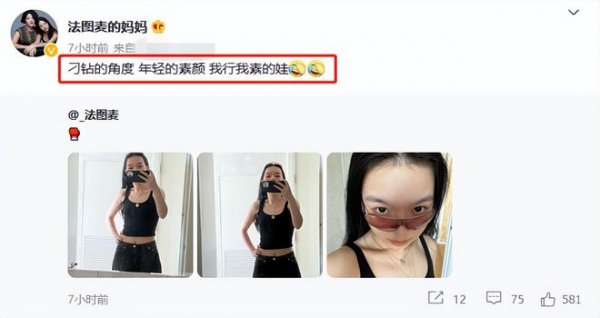 就连亲妈都在社交媒体上吐槽,说法图麦的自拍角度太刁钻,从上往下拍露出额头,素颜出镜确实就像她妈妈吐槽的那样是我行我素。