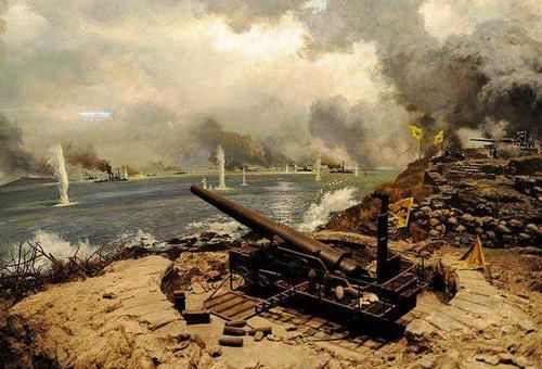 刘公岛的炮台被迫击沉北洋舰队的残余军