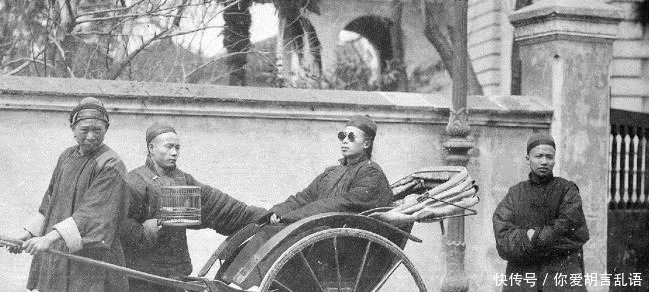 老照片:清末堕落腐败的八旗子弟。经过几代人的腐化,晚清的八旗子弟兵除了吃喝玩乐,已经完全不会打仗了。这样的军队面对列强入侵怎么能不兵败如山倒。图为带墨镜出行的八旗子弟