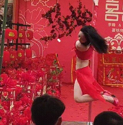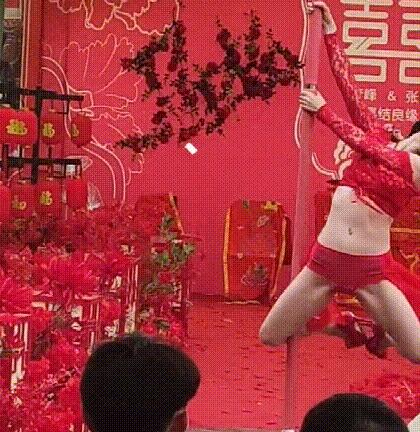 现代人见多识广,传统的婚庆节目已经让大家产生审美疲劳,为了营造过目不忘的效果,男方别出心裁祭出了出人意料的大招,让妙龄女子在婚礼上表演钢管舞!