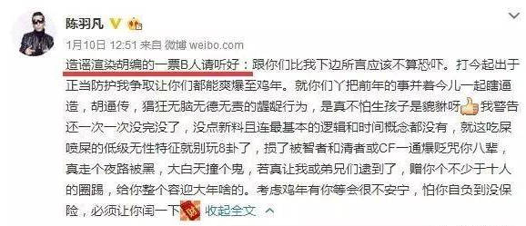 陈羽凡更是对于网传二人婚变一事直接爆了粗口。