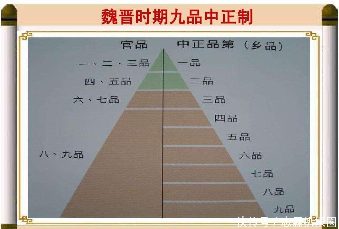 这个时候,出身中原名门的昌武亭侯、尚书陈群提出了"九品中正法",建议改革官员人事制度。这项制度一经提出,立刻获得了世族大家的一片赞赏之声。九品中正制到底是一项什么制度呢?九品中正制的关键词,或者说主要内容有两项。第一,九品。就是综合考量天下士人的德才、门第,评定人才的等级,共分为上上、上中、上下、中上、中中、中下、下上、下中、下下九品。第二,谁来评定人才的品级呢?朝廷设置专门的"中正"官。朝廷选择"贤有识鉴"的中央官员兼任原籍地的州、郡、县的大、小中正官,负责察访原籍地的士人,评议人才高下。吏部按照人才品级,分别授予官职。这两个关键词相加,就是九品中正制度。