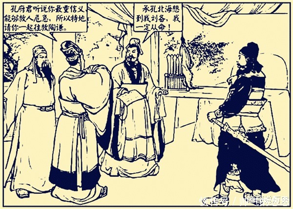 太史慈,字子义,山东东莱人,在北海被管亥的黄巾军围困的时候,他曾奉北海相孔融之命,突围前去平原,向大英雄刘备求助。刘备感到吃惊,原来孔北海还知道有我刘备这一号人,于是带领关羽、张飞等人前去救援。包围北海的黄巾军只是一群乌合之众,关羽一刀便砍死主将管亥,解了北海之围。