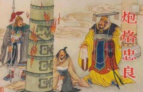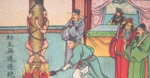 相传商纣王时期发明了一种叫"炮烙之刑"的酷刑,将犯人绑在中空的铜柱上,并涂上膏油,接着在铜柱里放置炭火,皮肤逐渐烧焦而死。之所以会出现炮烙之刑,据说某天纣王与妲己在郊外游玩,突然一声暴雷将树劈成两半,瞬间燃起大火,树上的蚂蚁被烤焦滋滋作响,看到这个情况,妲己不但不感到害怕,反而开怀大笑。