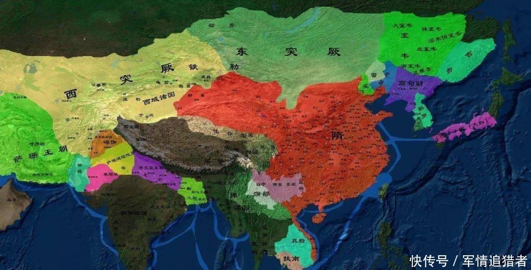 军事上,隋文帝先是对北方的突厥采用离间分化的策略,使突厥分裂成东、西两个部分,又让他们彼此征战而无暇南顾。在消除了后顾之忧后,隋文帝又分别吞并和攻灭了南方的西梁和南陈政权,结束了自东晋十六国以来中国长达近300年的分裂局面。