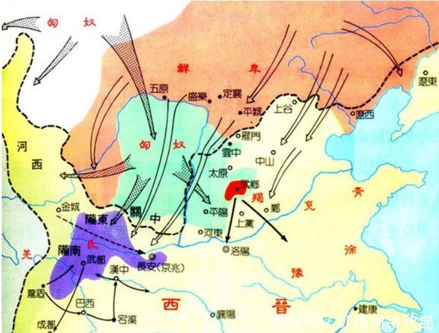 但西晋王朝却出了大问题。首先是八王之乱,简单地说就是以西晋王朝分封的各大藩王、外戚为夺取皇权而引发的一场大动乱。而当时许多少数民族已经南下,居住在内地,他们平时就对西晋王朝虎视眈眈,眼下见西晋内部已乱成一锅粥,也想趁火打劫,分一杯羹,这就引发了"永嘉之乱"。经过这两场大动乱,西晋王朝也走向了灭亡。北方及中原被五胡政权占据,而司马昭一脉的皇族,要么被杀死、要么被掳走。