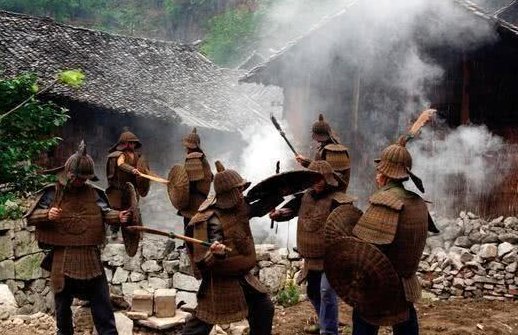 再来看看诸葛孔明是怎么火烧藤甲兵的吧。《三国演义》的第九十章里写道,诸葛亮带领蜀国军队与南蛮交战,在这次战争中,还有一个著名的小典故是七擒孟获。在前六次被诸葛亮抓住后,孟获并不愿意向蜀国屈服,诸葛亮第六次把孟获放了后,有人向孟获建议去向乌戈国借他们的藤甲军,因为藤甲军非常坚硬,据说可以抵抗一切刀箭攻击。