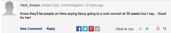 "我知道有人要说:怎么怀孕39周还去看摇滚演唱会....但她喜欢就可以了!"