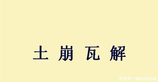 本文要介绍的成语,是王平口中的"土崩瓦解", 意为像土崩塌,瓦破碎一样,不可收拾,形容彻底崩溃。这句成语的最早出处见于司马迁《史记?秦始皇本纪论》当中的"秦之积衰,天下土崩瓦解。"