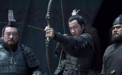 吕布命人取来了自己的宝雕弓,说:"我要用箭射中戟上的小枝,你们看好了,"刘备一听心想:这下完了,怎么能射中那么小得目标。关羽,张飞投来了怀疑的目光,他们心想:一会你要射不中,看这面子往哪搁。只有纪灵心里有些得意。