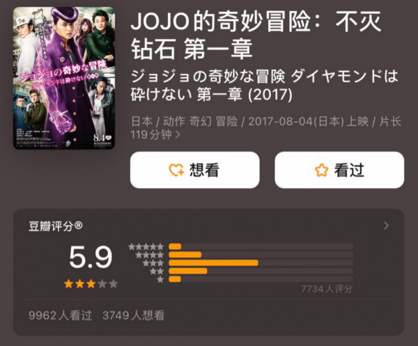 奇幻题材的《JOJO的奇妙冒险》原作9分+,真人版仅5.9分