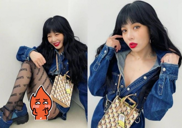 坐在地上的泫雅,表情十分酷拽,涂着大红唇,整个人显得热辣性感。在超短裤之下,泫雅还搭配了一条丝袜。据悉这条丝袜的价格超过千元,真是不简单。
