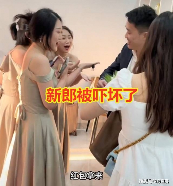 伴娘们的不走寻常路把新郎吓得不轻,谁知居然只是虚惊一场,看来新郎见多了"低俗婚闹",如今遇到这么文明、有礼貌地闹婚,反而觉得有点不适应了。