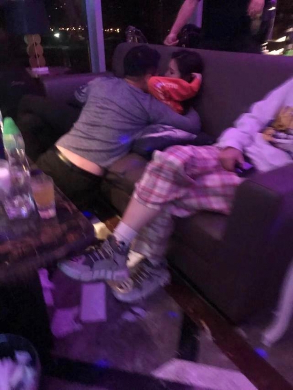 照片中,喝得酩酊大醉的汪小菲与一女子举止暧昧,从女子正脸可以确认,她就是汪小菲的绯闻女友张颖颖,镜头中,汪小菲直接瘫倒在张颖颖的肩头,而张颖颖始终表情自然,还用手轻柔地抚摸着汪小菲的脸部。