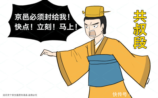后来武姜又让郑庄公将京邑封给叔段,让叔段住到京邑去。大夫祭仲向郑庄公进谏:"京邑比都城还要大,不应该作为您弟弟的封邑。这样既不符合法制,恐怕也会对您不利。"郑庄公哀叹道:"这是我母亲的意思,我又岂能违背她的心意呢?"之后叔段让郑国西边和北边的边邑,在服从都城命令的同时,也要听从他的命令。