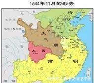 也就是说明清之间的交替没有割据的乱世,只有几大势力短暂争锋混战的1644年。结果是清朝从入关开始就牢牢占据先机,像是开挂一般,先是迁都北京并且修明史,在1645年就彻底打的李自成的大顺、张献忠的大西两个政权灰飞烟灭。而南明最强大的弘光政权也被攻灭。最后李自成和张献忠与南明残余势力联合在一起在南方苦苦抵抗清军数十年而被清朝统一中国。
