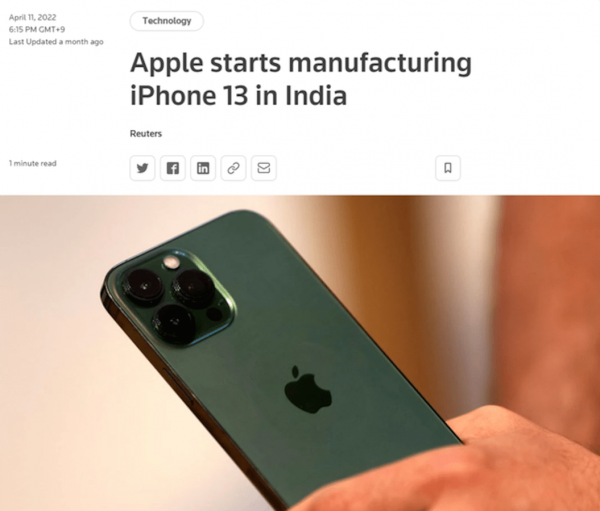 根据相关的媒体报道,5月下旬以后,印度市场建立的生产线已经开始生产iPhone13,越南市场也正在建设下一代iPhone的生产线,库克甚至公开对国内的供应链企业呼吁,希望国内企业向中国以外的市场发展,库克的这一系列行动也证实了苹果公司想要向其他地区迁移的决心。