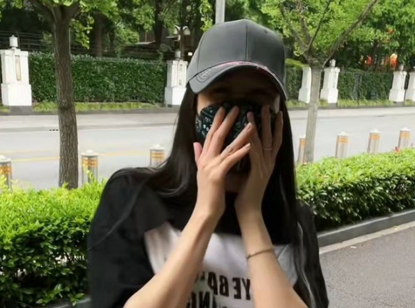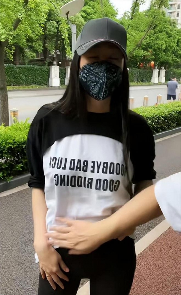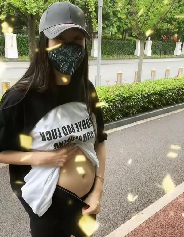 视频中,蒋丽莎身穿宽松T恤,戴着帽子与口罩,将自己捂得严严实实。老公陈浩民则站在一旁拍视频,还伸手拍了拍老婆的肚子。