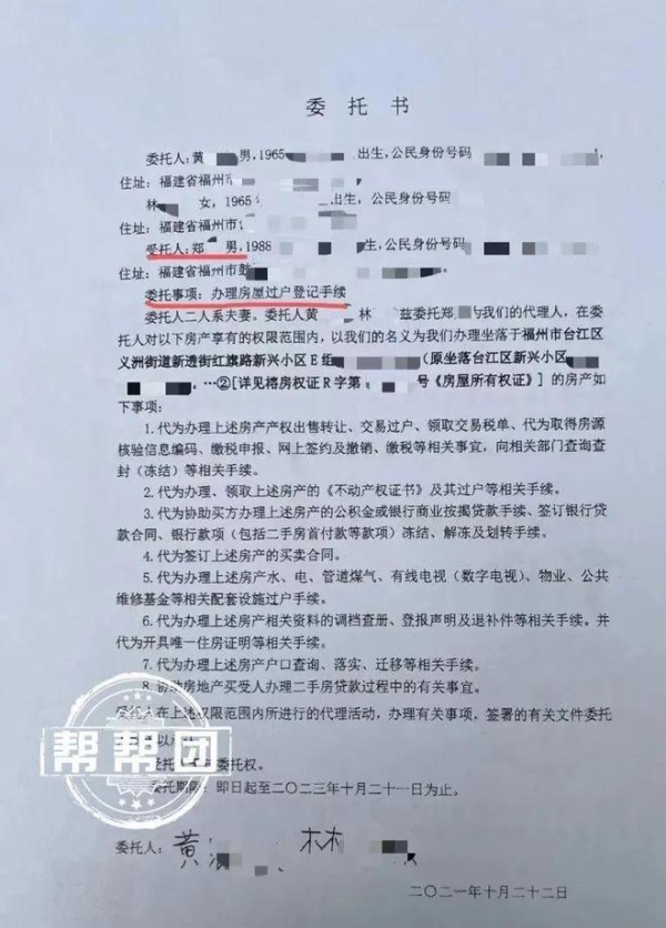 李某山则表示,徐某才是他的同事,有购房需求,同时委托他这么操作的是原房主,也就是潘先生的舅舅黄先生,他们还签过委托书,并表示这个可以凭原房主身份证调取查看。