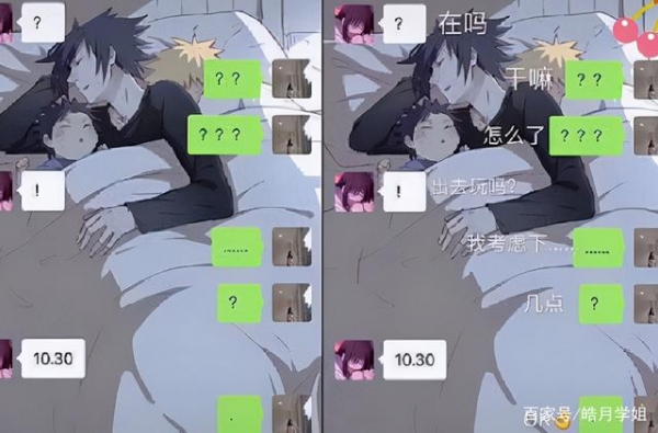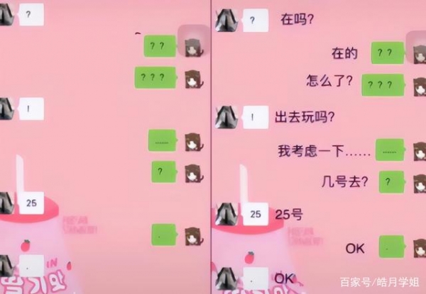 看是一个简单的"问号",其实是在吗的意思,这两位初中生正准备一起出去玩,一个学生说在吗出去玩吗,另一个学生回答考虑一下,几点出去?