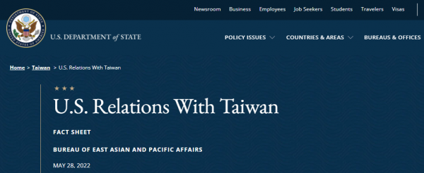 美国国务院网站5月28日"悄然"更新"美台关系事实清单"