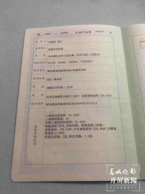 在武军所出示的房产证上显示,房子于2022年1月29日取得,2022年3月17日在永州市不动产中心抵押注销。"我一直蒙在鼓里,房产证拿到后房子又被卖了,这个证是我在不动产中心调阅到的"。