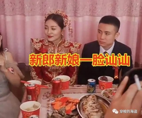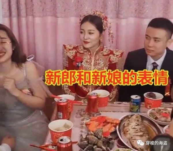 几对伴郎伴娘陪着新郎新娘吃饭的时候,这一对更是当众"秀恩爱",伴郎咬着一块肉让伴娘用嘴接,这样势必会造成一些"唇齿相接"。