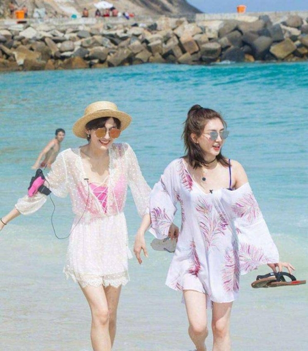 古力娜扎这样的衣服还会让你感觉到是泳衣吗?看看照片上的她穿着一件白色纱纱的裙衫,里面是一件玫红色的泳衣,就像是一件有点小仙气的连衣裙呀!