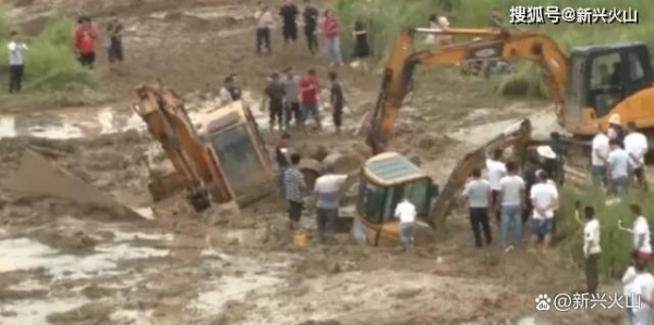 看到这种情况,老板只好再次调来一台大挖机,想把泥潭中的一大一小的两台挖机拖上来,谁料第三台挖机还没靠近,因地下的泥土太松软,这台挖机也滑进了泥潭之中,就这样,两台前来救援的大挖机成了泥菩萨过河,自身难保。